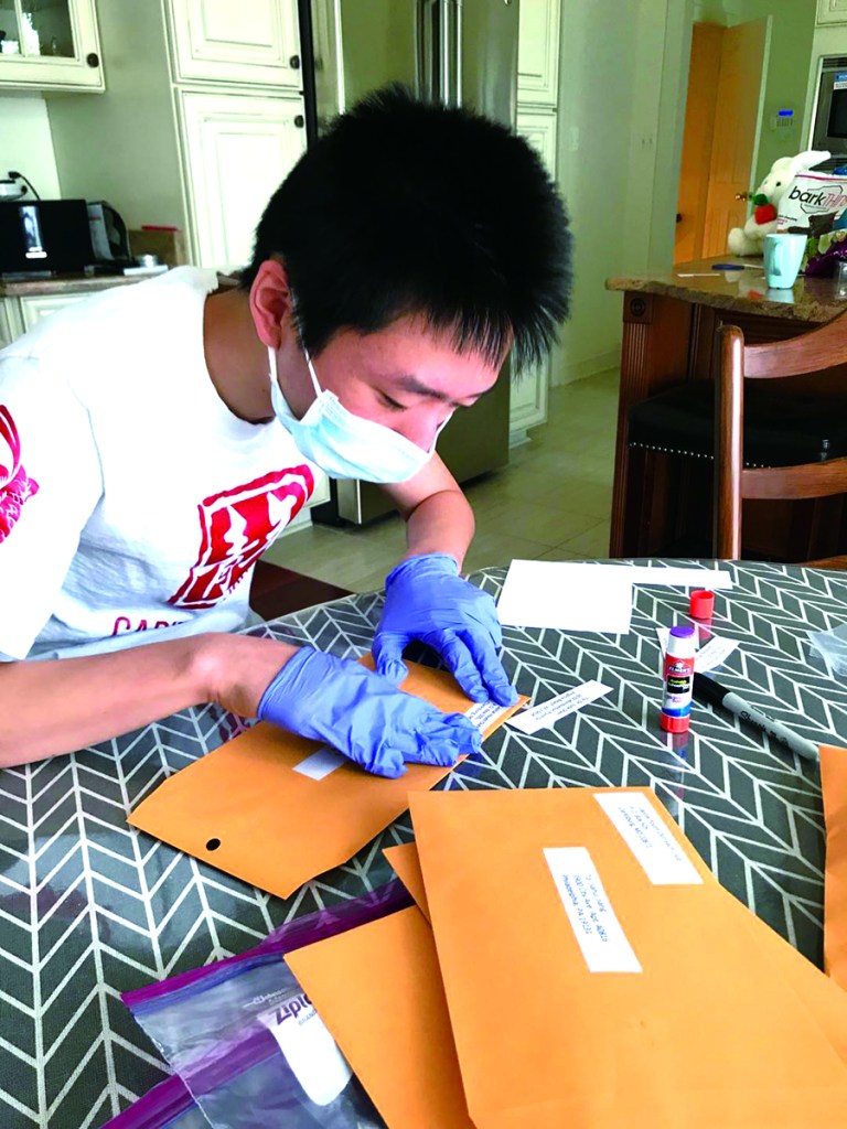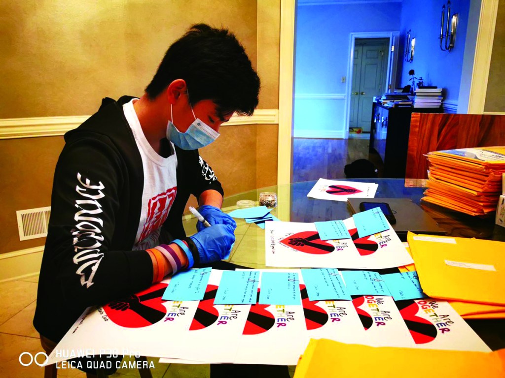 拳拳赤子心,耿耿桑梓情,爱心活动更得到了社会各界的支持!一些听说此事的社会爱心友人很快表达了捐赠630个N95口罩的意向。华府青年团体(CYOC)收到这个资讯后紧急动员,通过各种途径收集急需口罩的医护人员资讯,争取在收到口罩后第一时间将其分发到最需要的医护人员手上。在收到捐赠的口罩并整理好有接受意愿者的名单后,华府青年成员每一个人都戴着普通口罩和手套,打包整理,力求卫生,准确,迅速地把口罩寄给这63位急需防护用品的医护人员。华府青年成员Albert, Bill, Ella, Eva, Justin, Jerry, Emily, Jack, Leo, Barry, Alice, Grace, 和George 等参与了整个捐助过程。他们将名单和信封上的姓名、地址一个个仔细校对,生怕丢失了这些用来保护英雄的口罩!又亲手写上对医护人员的感谢与祝福。每一个信封满载着孩子们对医护人员的感谢与关心,飞往华府及邻近地区的前线医护人员。收到口罩的医护人员纷纷来信赞许,表达了对小义工们一片真情的衷心感谢。