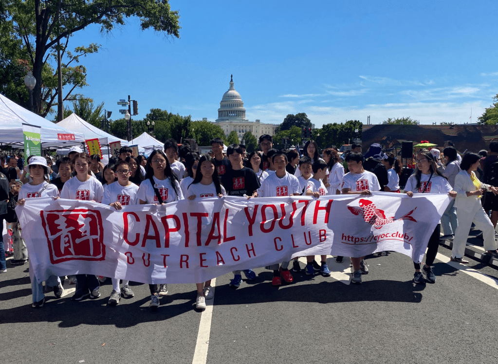 中午的游行将节日气氛推向高潮。华府青年高呼口号——“华盛顿中华文化节欢乐齐聚!”“融汇中西,共创未来!”——青春洋溢的面孔与蓬勃朝气为文化节增添了靓丽色彩。