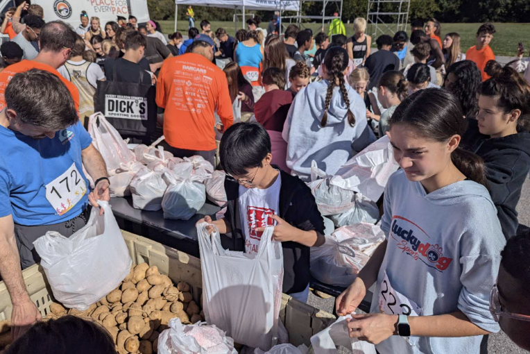 After the races were finished, we joined other volunteers and So What Else staff to participate in the community service project. We packed non-perishable food boxes that will be delivered to local families in need for the Thanksgiving holiday. So What Else distributes thousands of meals each year, and this project helped kick-start their efforts for the season. It felt meaningful to know that something we packed today would go on to help real families in our community.